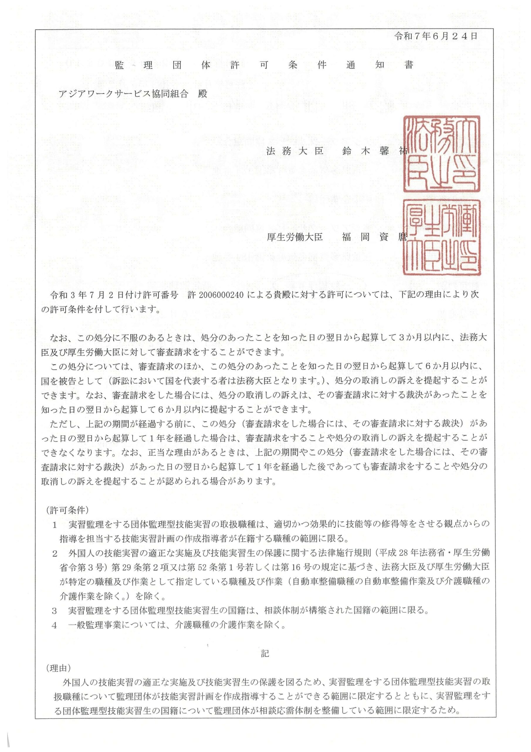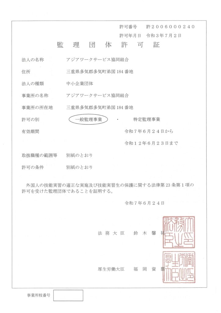 名 称 | アジアワークサービス協同組合 |